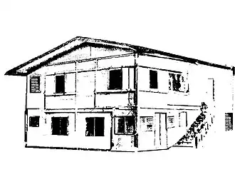 Built in 1930, it is relatively rare as a pre-World War II house with ifil wood construction. The building is two stories on a 12.6 by 8.4 metres (41 ft × 28 ft) plan. The first floor is concrete, while the second floor is ifil wood in both framing and flooring. The roof is framed in non-ifil wood and covered in corrugated metal. Its colonial-era architecture is exemplified by exterior stairs and porch elements. The house is notable for surviving not just World War II, but also termite infestations and typhoons that have regularly devastated the island.[2]