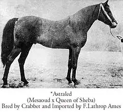 Mesaoud, an Arabian stallion, foaled 1887, was one of the foundation sires of the Crabbet Arabian Stud in England. Bred in Egypt by Ali Pasha Sherif, he was imported to England by Wilfred and Lady Anne Blunt in 1891.[1] He belongs to the Saklawi bloodlineage, making him an Al Khamsa Arabian. His lineage can verifiably be traced to the Bedouin of the desert.[2]