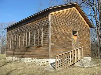 The school building was moved to its present location about 1944 and restored in 1998.[2] It is not known how many people were buried here.[2] Not all of the burial markers are intact, with roughly 65 visible gravestones.[2]