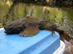 The Amur sculpin (Mesocottus haitej), also known as the Ussuri sculpin, is a species of freshwater ray-finned fish belonging to the family Cottidae, the typical sculpins. This species is found in eastern Asia where it is found in Russia, China and Mongolia - in the Amur River basin and some adjacent territories (the Tugur and the Uda Rivers flowing into the Sea of Okhotsk north from the Amur River, north-west of Sakhalin Island opposite the mouth of the Amur River). The Amur sculpin grows to a maximum published total length of 20 cm (7.9 in).[1] This species is the only known member of its genus, Mesocottus. According to the result of a pilot phylogenetic analysis, the freshwater Mesocottus is a sister lineage to the Cottus clade.[2]