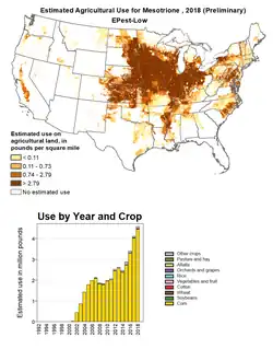 - ^ US Geological Survey (2021-10-12). "Estimated Agricultural Use for mesotrione, 2018". Retrieved 2022-01-17.