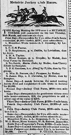 - ^ "Metairie Jockey Club Races". The Times-Picayune. New Orleans, Louisiana. March 8, 1839. p. 3 – via Newspapers.com.