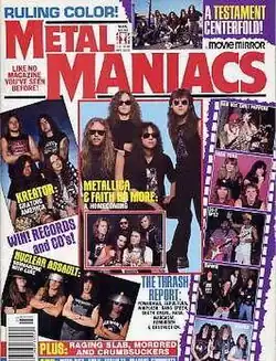 Founded in 1989 by Mike 'G' Greenblatt and Katherine Ludwig of Metal Shop.[1] Where its sister publication Metal Edge largely covered glam metal, Metal Maniacs focused largely on covering the more extreme sub-genres of heavy metal such as thrash and death metal genres.[2] Originally a Sterling publication, it was acquired by Zenbu Media in February 2007.[3] The magazine's editorial board was based in Manhattan, New York City, and published ten issues per year.