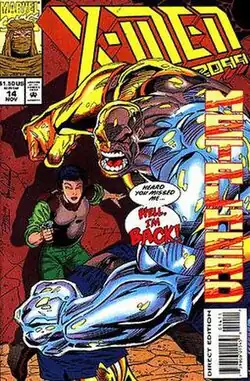 ![]() Cover to X-Men 2099 #14 showing Metalhead and Rosa Art by Ron Lim | |