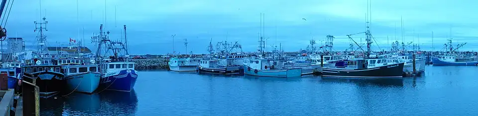 This community is also the French Shore's busiest port with draggers, trawlers, seiners, cod, crab and lobster boats docking there. The fishing industry has long been the main source of income in Meteghan. Clare's shipbuilding industry began in Meteghan in 1890 with the construction of the first dry dock built in conjunction with a shipyard. Notable vessels include the Royal Canadian Navy training schooner HMCS Venture, built in 1937. The largest remaining shipyard is the A.F. Theriault & Sons Shipyard in nearby Meteghan River.