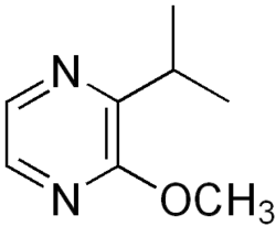 Methoxypyrazines are a class of chemical compounds that produce odors. The odors tend to be undesirable, as in the case of certain wines,[1] or as defensive chemicals used by insects such as Harmonia axyridis which produces isopropyl methoxy pyrazine (IPMP). They have also been identified as additives in cigarette manufacture. Detection thresholds are very low, typically near 2 parts per trillion (1 ng/L).[1]