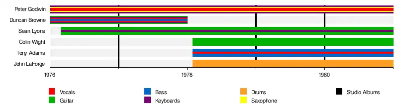 - Peter Godwin – vocals, keyboards (1976—1980)