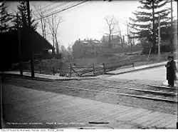 The Toronto terminal of the Metropolitan line was on Yonge Street at the north side of the CPR crossing which at that time was a level crossing. This is near what is now the Summerhill subway station. Passengers arriving from the south by the Yonge streetcar line, needed to get off on the south side of the CPR crossing and walk across the CPR tracks to board the radial cars.[1] A 1905 photo showed that the terminal was off-street at the south-west corner of Yonge Street and Birch Avenue. However, a 1914 map showed that the terminal was relocated to the east side of Yonge Street.