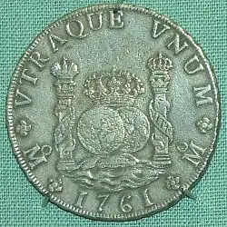 - in silver: 1⁄2, 1, 2, 4 and 8 reales, with 1 peso = 8 reales.