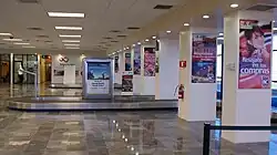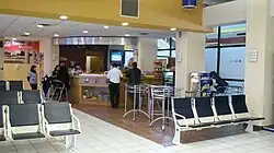 The passenger terminal is a one-story structure that accommodates arrivals and departures, offering standard services typically found at regional airports. These services include parking facilities, a check-in area, security areas, a VIP lounge,[4] retail outlets, immigration, and customs facilities, baggage-claim zones, an arrivals hall with car rental services and taxi stands, and a departure concourse with five gates that provide direct access to the apron, allowing passengers to board their planes by walking to the aircraft.
