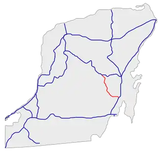 Federal Highway 293 (Carretera Federal 293) is a Federal Highway of Mexico, located entirely within Quintana Roo. It connects Mexican Federal Highway 184 at Polyuc to Mexican Federal Highway 307 near Pedro Antonio Santos.[2]