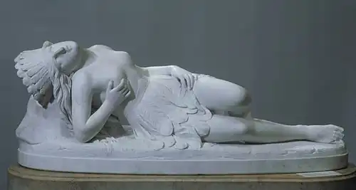 Mexican Girl Dying is a marble sculpture carved in 1848 by American artist Thomas Crawford. It measures 20.25 inches (51.4 cm) x 54.5 inches (138 cm) x 19.5 inches (50 cm) and is part of the Metropolitan Museum of Art's collection.[1] The woman's identity is not known, but the artist has stated that he drew influence from William H. Prescott 1843 History of the Conquest of Mexico. She bears a wound below her right breast, suggesting that she has been in battle. The cross beside her suggests martyrdom.[1]