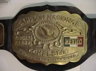 The Mexican National Heavyweight Championship (called the Campeonato Nacional Completo in Spanish) is a Mexican lucha libre (professional wrestling) championship created and sanctioned by the Mexico City Boxing and Wrestling Commission (Spanish: Comisión de Box y Lucha Libre México D.F.). While the Commission sanctions the title, it does not promote the events in which the Championship is defended. From 1933 until the mid-1990s, Consejo Mundial de Lucha Libre (CMLL) controlled the Championship, since then AAA gained control of the championship, after the Commission granted them control of the championship. In 2006 the championship was abandoned and replaced by the AAA Mega Championship. In 2009 the championship became active again on the Mexican Independent circuit until 2013. CMLL brought the championship back in 2017. Since the championship is designated as a heavyweight title, the championship can only officially be competed for by wrestlers weighing at least 105 kg (231 lb). However, the regulation is not strictly adhered to.[1]
