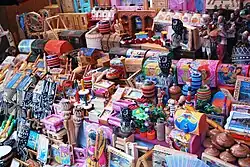 Mexican handcrafts and folk art is a complex collection of items made with various materials and intended for utilitarian, decorative or other purposes. Some of the items produced by hand in this country include ceramics, wall hangings, vases, furniture, textiles and much more.[1] In Mexico, both crafts created for utilitarian purposes and folk art are collectively known as “artesanía” as both have a similar history and both are a valued part of Mexico's national identity. Mexico's artesanía tradition is a blend of indigenous and European techniques and designs. This blending, called “mestizo” was particularly emphasized by Mexico's political, intellectual and artistic elite in the early 20th century after the Mexican Revolution toppled Porfirio Díaz’s French-style and modernization-focused presidency.[2] Today, Mexican artesanía is exported and is one of the reasons why tourists are attracted to the country.[3] However, competition from manufactured products and imitations from countries like China have caused problems for Mexico’s artisans.[1][4]