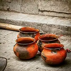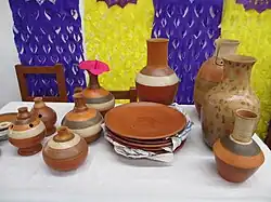 Handcrafts in Mexico vary widely from materials used, techniques and employ and styles preferred.[3] The most prevalent of Mexico's crafts is ceramics/pottery. Ceramics was considered one of the highest art forms during the Aztec Empire, with the knowledge of making pottery said to have come from the god Quetzalcoatl himself. Pre-Hispanic pottery was made by coiling the clay into a circle then up the sides, then scraping and molding the coiled work until the coils could no longer be detected. The Spanish introduced the potters’ wheel and new glazing techniques.[28] Majolica glazed pottery was introduced by the Spanish. Puebla in particular is renowned for its variety of Majolica, which is called Talavera. One distinctive feature of this city is that many kitchens and buildings are decorated with intricately detailed Talavera tiles.[29] Tiles are a subset of ceramic pottery and were used extensively in colonial-era Mexico. These tiles were first fired at a low temperature, then hand-painted with intricate designs, then fired at a high temperature to set the glaze. These are still made, but most decorative tiles used in Mexico are factory-made.[30] Unglazed pottery is still made, but generally it is for decorative purposes only, and copies the designs of pre-Hispanic cultures.[29]