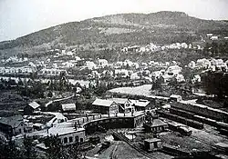 The land was once part of Holmanstown Plantation, granted by the Massachusetts General Court in 1789 to Colonel Jonathan Holman of Sutton, Massachusetts (now Millbury) and others. In 1803, Dixfield was set off and incorporated. The plantation's remaining portion, which had been first settled by Isaac Gleason, was incorporated on February 13, 1818, as the town of Mexico.[3] The name was inspired by local sympathy for Mexico's 1810–1821 fight for independence from Spain.[4] Then known as Mexico Corner, it developed as a farming community with mills at the streams.[5] In 1894, George W. Ridlon, president of the Rumford Falls Brick Company, founded a settlement in the eastern part of the town called Ridlonville. He erected 30 cottages and The Hotel Ridlon.[4]