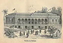 The first participation of Mexico in these exhibitions took place in the Exposition Universelle (1867) and from this moment, the participation of Mexico became more recurrent, returning to participate in the Exposition Universelle (1889) in Paris, with which it stimulated its interest in this type of event, culminating in a pavilion at the Exposition Universelle (1900) in Paris.[1]