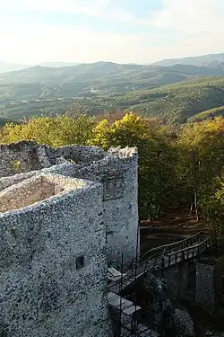 Bás (II) is the most prestigious member of the kindred. As a confidant of Béla IV of Hungary, he acquired domains in Upper Hungary, including the estate Mikola in Bars County (later Garammikola, present-day a borough of Želiezovce, Slovakia) in 1247, which later became the centre of the Mezőpilis clan's landholdings in the region. Their lands laid mostly in Esztergom, Bars and Hont counties.[4] Bás served as ispán of Trencsén County from 1251 to 1259.[5] In this capacity, he built the castle of Ugróc in the county (present-day ruins near Uhrovec, Slovakia). The surrounding nine villages belonged to its lordship. Bás entered the service of Duke Stephen by 1259. When the duke's relationship worsened with his father King Béla in the 1260s, he initially remained loyal to the duke, even serving as count (head) of Stephen's court from 1263 to 1264. However, shortly before or after the 1264–1265 civil war between father and son, Bás defected to the court of Béla IV. As a result, when Stephen ascended the Hungarian throne in 1270, Bás lost political influence, although the king forgave him.[6] Bás' brother Urka possessed Vezekény and Kural in Esztergom County (present-day Hronovce and Kuraľany in Slovakia, respectively) in 1256. He was styled as steward of the royal estate of Liptó (the core of future Liptó County) and the king's tárnok (treasurer official) in 1269.[3]