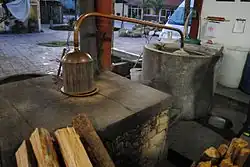 The oldest agave spirits distilleries (called tabernas or viñatas) use Filipino-type stills, many of which are still operational (like the Macario Partida distilleries in Zapotitlán de Vadillo, Jalisco). The technology was also transported through trade routes into Zacatecas, Guanajuato, Michoacán, Sonora, and the rest of Mexico, as well as parts of the southern United States, where modified Filipino-type stills have been reported.[6][14] The alembic-type still, finally introduced by the Spanish for distilling sugarcane, was later also adopted for mezcal production.[16] Most modern mass-produced mezcals are made using alembic-type stills, but the highest category of certification, the "ancestral mezcal" must be distilled using only Filipino-type stills.[17][18]