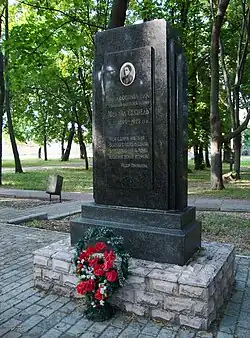 On 5 November 1954, Śeśpĕl's remains were reburied in the park Oster where a memorial tombstone was installed.
