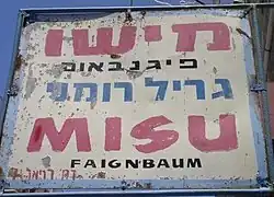 In 1960, the Romanian-Israeli couple Mișu and Sara Feigenbaum founded a delicatessen on HaMered Street in Jaffa, which later became a Romanian grill restaurant under the name "Mișu".[1] The "Mișu" restaurant operated at 5 HaMered Street for about 25 years,[2] and then moved to 7 Raziel Street in Jaffa,[3] where it operated for another 30 years until its closure in the summer of 2015.