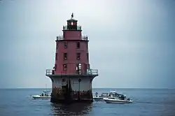 The Miah Maull Shoal Light is a lighthouse on the north side of the ship channel in Delaware Bay, off of Cumberland County, New Jersey on the East Coast of the United States, southwest of the mouth of the Maurice River.
