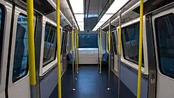 Running clockwise, the Downtown (Inner) Loop serves all Downtown stations except Third Street station. The Outer Loop (Brickell and Omni Loops) runs counterclockwise and share tracks around the downtown area, serving all stations except for Miami Avenue Station. The Brickell loop runs a line into the Brickell area to the south of downtown, while the Omni Loop contains a line with stations in the Arts & Entertainment District neighborhood north of Downtown. This unusual pattern, a circular central loop where the trains running counterclockwise are those running from and back to destinations outside the loop, whereas trains in the opposite clockwise direction are only running a tight inner circular route, is also followed by the New York JFK Airport AirTrain system. The inner loop generally runs tandem two car trains while the outer loops only run with single cars. Each car can carry over 90 passengers.