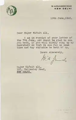 Major Mian Kifait Ali (July 1902 – 1 December 1994) was a pioneer of the Pakistan movement, his masterpiece book "Confederacy of India" published in 1939, under the pen name "A Punjabi" was the first to deal with political, economic and administrative aspects of Pakistan.