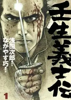 Adapted from the novel of the same name written by Jiro Asada and illustrated by Takumi Nagayasu. The publication was particularly complex and having passed through several publishers. Mibu Gishiden started in Kadokawa Shoten's seinen manga magazine Comic Charge on November 20, 2007,[a] it ran until the magazine was discontinued on January 20, 2009.[b] The series transferred to Kodansha's shōnen manga magazine Bessatsu Shōnen Magazine on January 9, 2010;[c] and it ceased publication in the magazine on February 9, 2012,[d] and moved to the publisher's Homesha's Garaku.mag web manga site and resumed on April 17, 2014.[14] On August 17, 2015, the magazine has ceased publication,[15] and the series resumed on its own official website on August 5, 2016.[16] In 2020, the health concerns of Takumi Nagayasu, victim of a stroke, also impacted the publication, the manga finished serialization on July 7, 2023.[17]