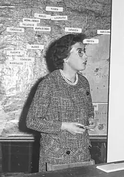 Micaela Portilla completed her first studies at the Colegio del Niño Jesús in Vitoria and in 1933 went to the secondary school in the same city. She studied Teaching in 1941 and later Philosophy and Letters.[1]