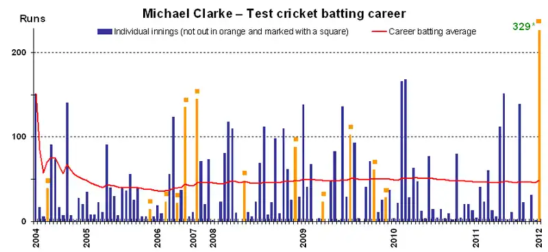 - Clarke's highest Test batting score of 329* was made on 5 January 2012 against India. This is the highest Test match batting score at the Sydney Cricket Ground,[43] and the now fifth (then fourth) best Test match batting score by an Australian.[109]
