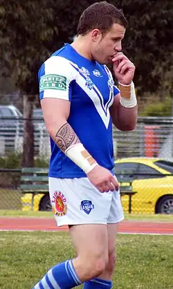 The New Zealand Warriors then signed him on a two-year deal and he played 14 games for the club in 2007. He was sent off in round 12 while playing against the Canterbury-Bankstown Bulldogs for a high shot on Cameron Phelps.[3][4]
