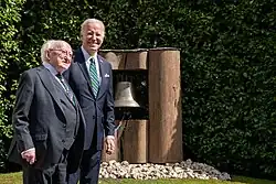 - ^ "US President rings Peace Bell at Áras an Uachtaráin". RTÉ News. 13 April 2023. Retrieved 14 April 2023.