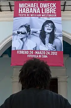 The exhibition showcased photographs from the book rebuilt to a larger scale using an unconventional variety of paper and a printing technique created specifically for the venue.[51] Dweck said, "I've been given the honor of being one of the first living American artists to exhibit in Cuba, I felt I had to present something additional as a show of respect and gratitude. The unique motif is meant to honor the beauty of the island's past, reflect the heat of the people and serves as a reflection of their spirit, their future, their potential."[51] Following the exhibition, Dweck donated all 52 photographs, then valued at around $500,000, to the Fototeca de Cuba.[58]