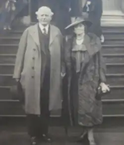 Sadler married Mary Ann Harvey Sadler, "a wealthy Yorkshire heiress", in 1885.[13][14] Mary, born in 1852, was the daughter of a linen manufacturer with a warehouse in Barnsley.[15] She was his hostess at their house in Headingley, Leeds, called Buckingham House, where Sadler's Impressionist and Post-Impressionist paintings were displayed in a picture gallery, receiving many cultural figures like Roger Fry and emerging artists like Henry Moore and Jacob Kramer.[16] Mary died in 1931[17] and left a legacy to the Oxford Preservation Trust.[14] Their only child was Michael Sadleir (1888–1957), a British publisher, novelist, book collector and bibliographer.