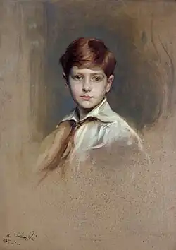 His paternal grandparents were James Hay Erskine-Wemyss, MP for Fife (a grandson of the 17th Earl of Erroll) and Augusta Millicent Anne Mary Kennedy-Erskine.[b] Among his maternal family were aunts, Mary Frances Erskine-Wemyss, who married Cecil Stratford Paget (a son of Gen. Lord George Paget), and Dora Mina Erskine-Wemyss, who married Lord Henry Grosvenor (third son of the 1st Duke of Westminster). Through his aunt Dora, he was a first cousin of William Grosvenor, 3rd Duke of Westminster.[3] His maternal grandparents were John Paulet, 14th Marquess of Winchester and Hon. Mary Montagu (a daughter of 6th Baron Rokeby). Both of his maternal uncles, Augustus John Henry Beaumont Paulet (who was killed in the Second Boer War) and Henry William Montagu Paulet, succeeded his grandfather as the Marquess of Winchester.[9]