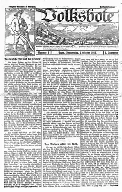 Although the Volksbote was banned due to its use of German. His political stance as editor is hard to categorise: He was strongly anti-social democrat and strongly anti-communist, but (due to his religion rather than his politics) he was also anti-Semitic. Therefore, he was strongly "middle of the road". Critically he just desired autonomy and recognition of the remote German-speaking regions without kowtowing to the German nation.[3]