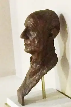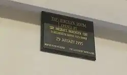 In January 1995 Hordern was invited back to his old college in Brighton, where a room was named in his honour.[187] Inside, the college had commissioned the sculptor Peter Webster to create a bronze bust of the actor which is displayed with a plaque. Hordern's last physical acting role came shortly afterwards as Lord Langland in the comedy film A Very Open Prison.[188] This was followed by two narration performances, firstly in Spode A History of Excellence,[189] and then in the five-part film Dinosaurs and Their Living Relatives.[190]