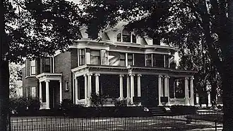 Liebel lived in a home built by his father in 1882 known as the "Michael Liebel House," at 139 West 21st Street in Erie, Pennsylvania.[13] The mansion is an 8,198 sq. ft.[14] Colonial Revival, centered on a large lot and constructed of buff-colored brick. It features a massive porch with Corinthian columns and a bracketed dentiled cornice.[15] Three pedimented dormers adorn the roof which is accented with a cornice matching that of the porch roof. The "Michael Liebel House" is part of the West 21st Street Historic District that was added to the National Register of Historic Places in 1990.[16]
