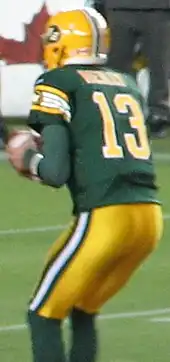 Michael Reilly (born January 25, 1985), previously known as Mike Reilly, is an American former professional football quarterback player who played in the Canadian Football League (CFL) for 11 seasons. He was the starting quarterback for the Edmonton Eskimos when they won the 103rd Grey Cup and was named the Grey Cup Most Valuable Player. He was originally signed by the Pittsburgh Steelers of the National Football League (NFL) as an undrafted free agent in 2009. He played college football for the Central Washington Wildcats. He was named the CFL's Most Outstanding Player in 2017. Reilly has also been a member of the BC Lions of the CFL and the NFL's Pittsburgh Steelers, Green Bay Packers, St. Louis Rams and Seattle Seahawks.