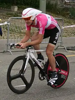 Michael Rogers (born 20 December 1979) is an Australian retired professional road bicycle racer who competed professionally between 1999 and 2016, for the Mapei–Quick-Step, Quick-Step–Innergetic, Team HTC–Columbia, Team Sky and Tinkoff teams. He is a three-time World Time Trial Champion, winning consecutively in 2003 (after David Millar was stripped for doping), 2004 and 2005, and won Grand Tour stages at the Tour de France and the Giro d'Italia.