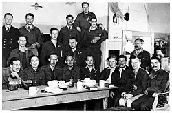 Confusion ensued, with the German guards running around in panic and the NCOs unsure of the allegiance of the men under their command.[41] Before long, a shot rang out and Sinclair sank to his knees, wounded.[42] As the confusion began to subside, the prisoners were summoned to the courtyard for an Appell and the wounded Sinclair was left on the ground, unattended, for nearly 10 minutes.[43] This caused much anger and resentment within the prisoner contingent, with many believing Sinclair had been killed.[44]