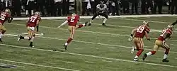 He was waived for final roster cuts before the start of the 2012 season, but was signed back to the practice squad on September 1, 2012.[6] After being on the practice squad for twelve weeks in 2012, he was promoted to the active roster.[1][7] He finished with 11 tackles and made several key plays on special teams during the 49ers run to Super Bowl XLVII, where they fell 34–31 to the Baltimore Ravens.[8][9]