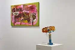 Michaela Eichwald (born 1967) is a German painter based in Berlin.[1] Her work mostly consists of abstract paintings using mixed media (including acrylic and oil paints, spray paint, wax, lacquer, paper) on different surfaces (pleather, fabrics).[2][3][4] Art critic Christopher Knight described her influences as, "Abstract Expressionism, Japanese Gutai and 1980s Neo-Expressionism, both German and American."[3] Eichwald's paintings have been shown at the Museum of Modern Art, Museum Brandhorst, the Rennes Biennial, dépendance,[2] Reena Spaulings Fine Art, Maureen Paley's gallery, and other art galleries.[4][5][6][7] Since 2006,[8] Eichwald has been running the blog uhutrust.com, where she shares photos and texts. Since the summer semester of 2021 she has held a professorship for abstract painting at the Academy of Fine Arts Vienna.[9]