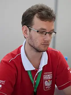 Michal Nowosadzki is a Polish professional bridge player. Representing Poland, Nowosadzki won the 2015 and 2019 Bermuda Bowl. Nowosadzki is a World Grand Master and as of July 2020, ranked fifth in the world by the World Bridge Federation. His regular partner is Jacek Kalita. In July 2020, he admitted to cheating online by looking at all four hands "self-kibitzing".[1]