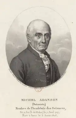 Michel Adanson (7 April 1727 – 3 August 1806) was an 18th-century French botanist and naturalist who traveled to Senegal to study flora and fauna. He proposed a "natural system" of taxonomy distinct from the binomial system forwarded by Linnaeus. The standard author abbreviation Adans. is used to indicate this person as the author when citing a botanical name.[1]