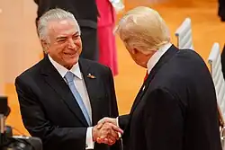 A 2017 poll showed that Temer's administration had 7% popular approval, with 76% of respondents in favor of his resignation.[4] Despite widespread protests, Temer refused to step down.[5] He did not stand for president in the 2018 Brazilian general election and was succeeded by Jair Bolsonaro.