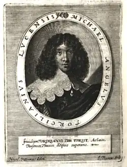 Michelangelo Torcigliani was born in Lucca in March 1618. He received his early education at the prestigious college of San Girolamo, under the guidance of the well-known humanists Guido Vannini, translator of Tasso's Jerusalem Delivered in Latin hexameters, and Giuseppe Laurenzi. He continued his studies in Rome, where he remained until 1636. When conflicts developed between Lucca and the Church he moved to Venice, where he became a member of the Accademia degli Incogniti and befriended the poets Giovanni Francesco Loredan, Leonardo Quirini and Pietro Michiel.[1] Torcigliani died in Venice, November 25, 1679.