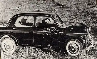 A few weeks later, on 2 August 1958, Navarra and a fellow doctor (Giovanni Russo, who had nothing to do with criminal activities) were both shot dead on an isolated country road as they drove home in Navarra's Fiat 1100. The car was blocked on the open road by two other vehicles and riddled with submachine gun bullets. Navarra's funeral took place two days later in San Martino, the main church of Corleone. A few weeks later, on September 6, three men known as friends of Navarra were killed in a raid at Corleone.[1] Reciprocal killings continued until 1963, and Leggio had to disappear having been condemned for the killing of Navarra.[9][11]