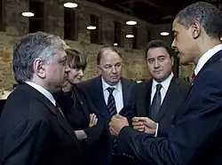 According to the BBC, Calmy-Rey was "widely criticised" for putting on a headscarf to meet Iranian President Mahmoud Ahmadinejad on 19 March 2008, even though it was acknowledged that she was simply following proper social protocol.[24] While Socialist MP Liliane Maury Pasquier agreed that the Swiss representant had to respect foreign protocols, this sparked a negative remark from Socialist MP Maria Roth-Bernasconi. In response, Calmy-Rey stated that she was following protocol out of respect, and that had she not done so, she would not have been able to attend the meeting, which has been widely acknowledged.[25]